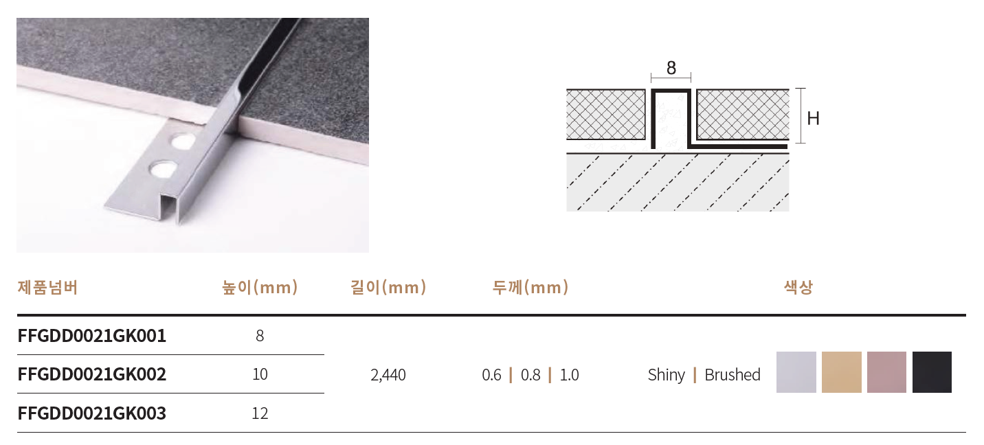 규격 : 8 x 2,440 (높이 x 길이)